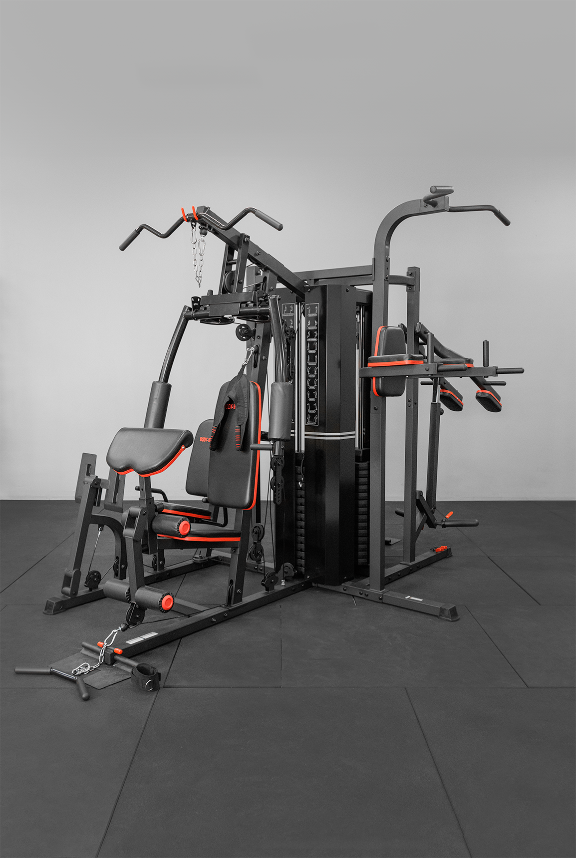 With the Home Gym you get form and function in the shape of 'oversized' padding and commercial gauge steel tubing wrapped in a jet black durable powder-coated finish. Considering the variety of exercises that can be performed using the Home Gym's stations, it has a considerably compact footprint making it ideal for smaller home gym spaces.