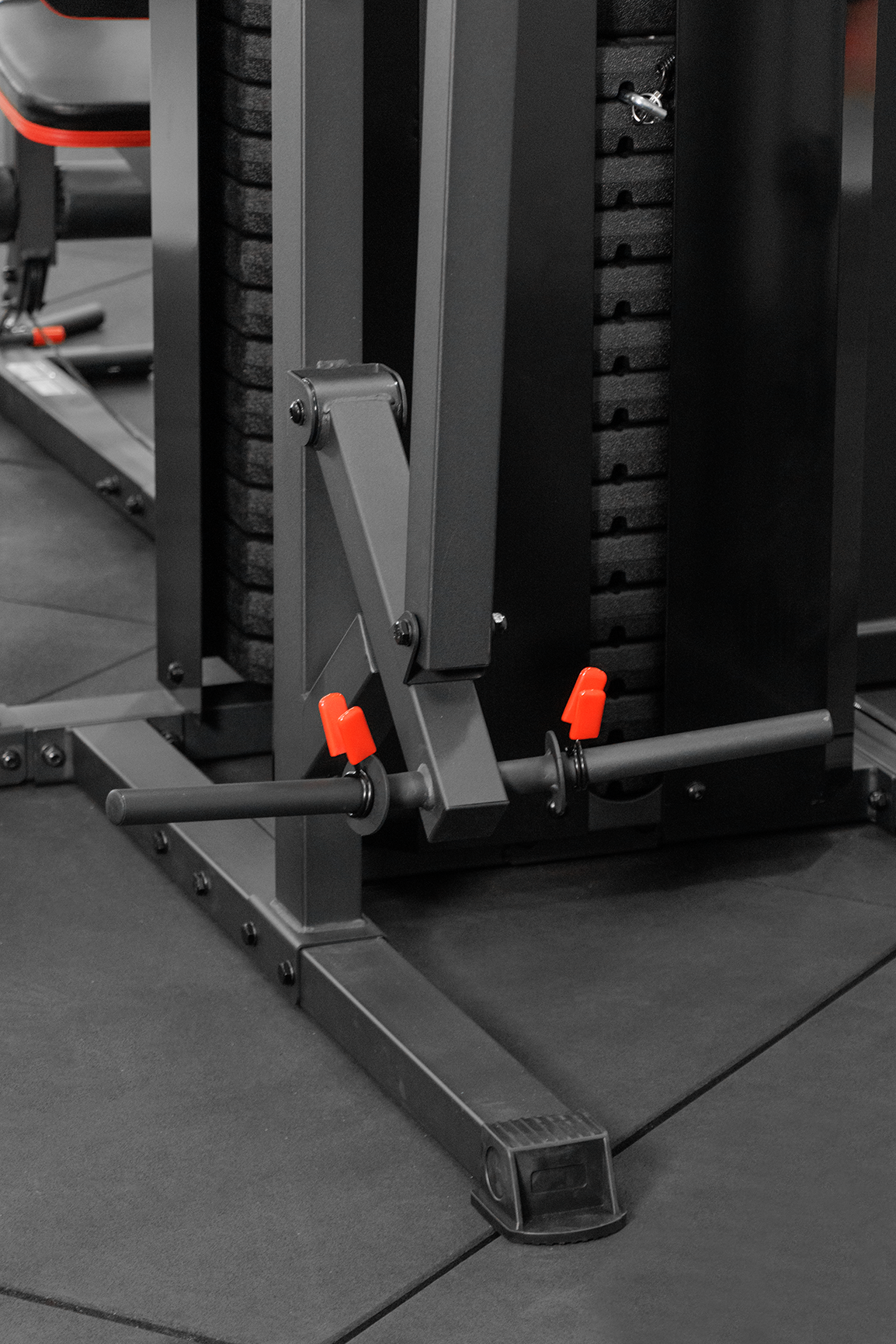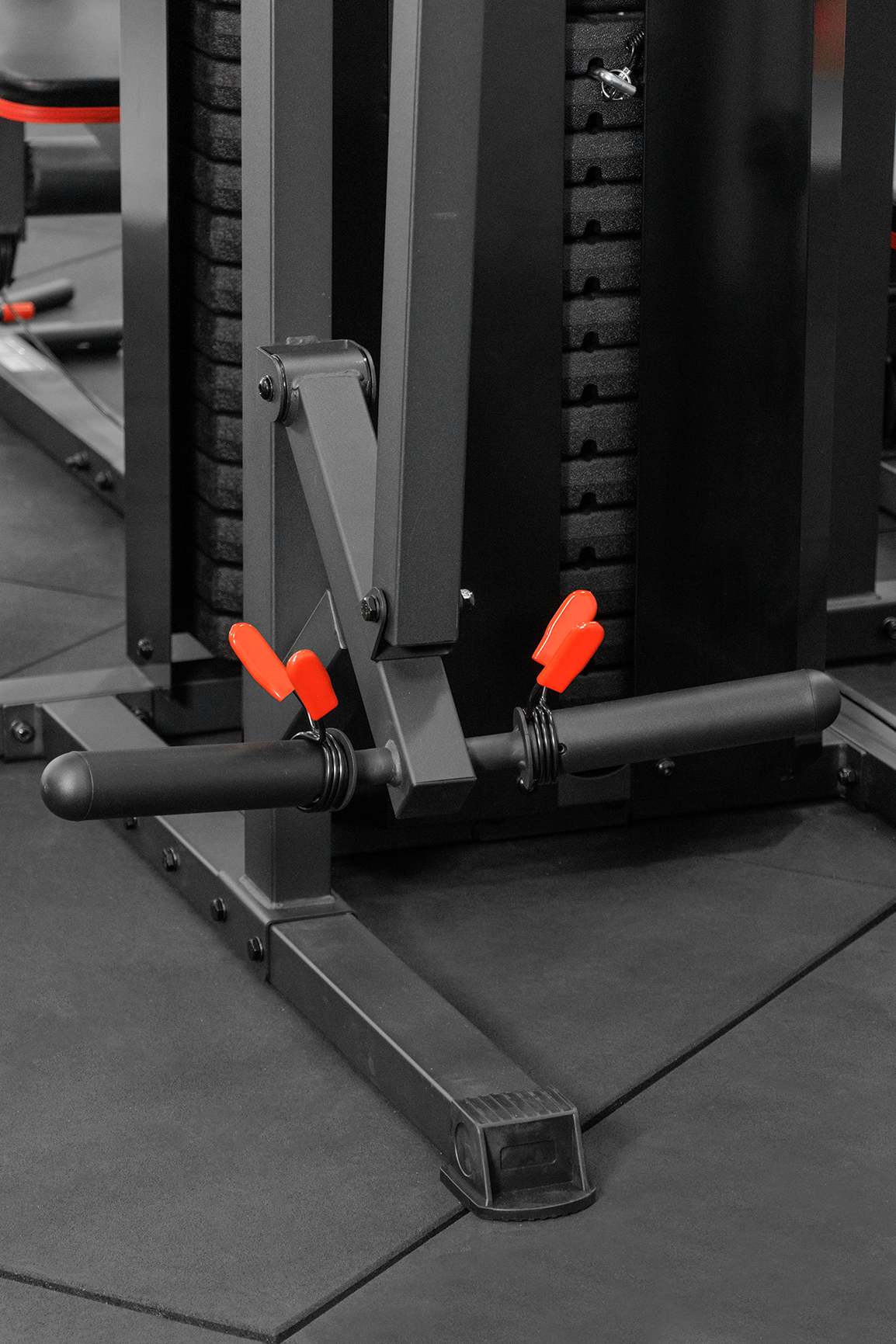 Comes equipped with a fully integrated leg station, allowing for squats, calf raises, and lunges. Compatib le with both Standard and Olympic weight plates for added resistance and intensity. Please note: Weight plates are not included sold separately.