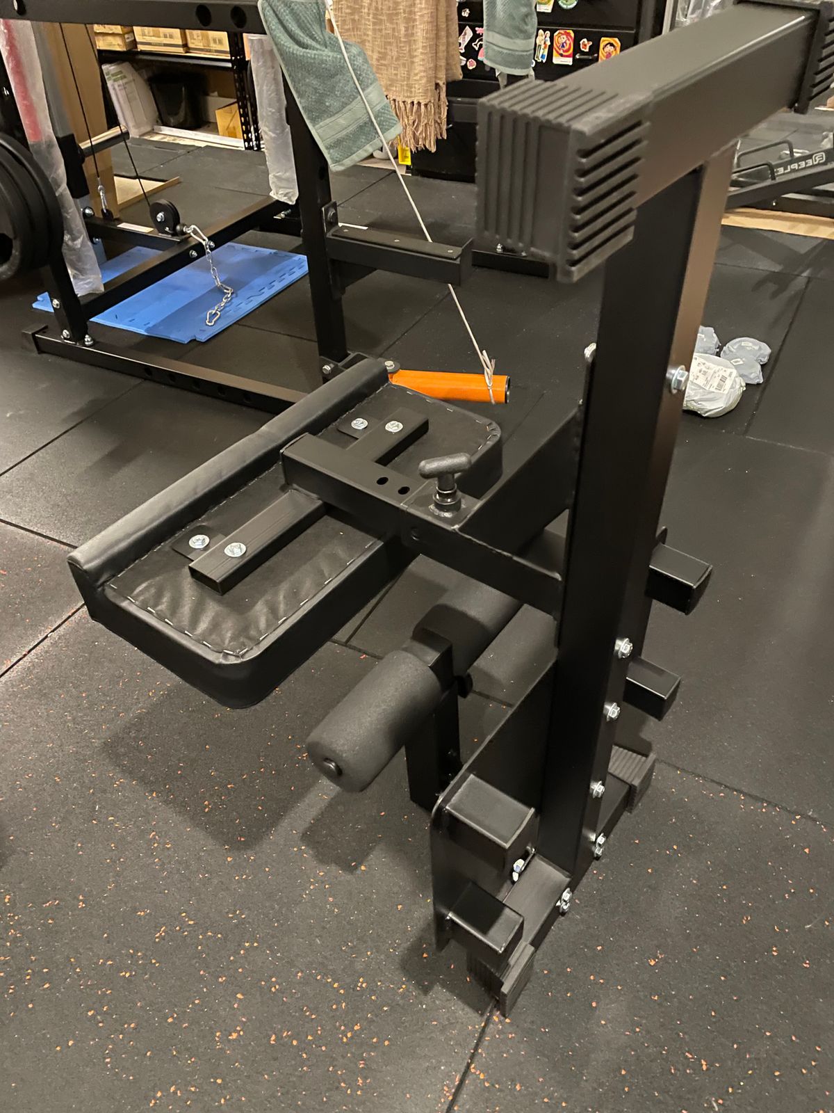 This sissy squat is built solid with thick adjustable padding. It's a great exercise to totally focus on the quads, eliminating all other muscles from the movement. Along with developing your quads, this exercise will help develop your balance and even your core strength.