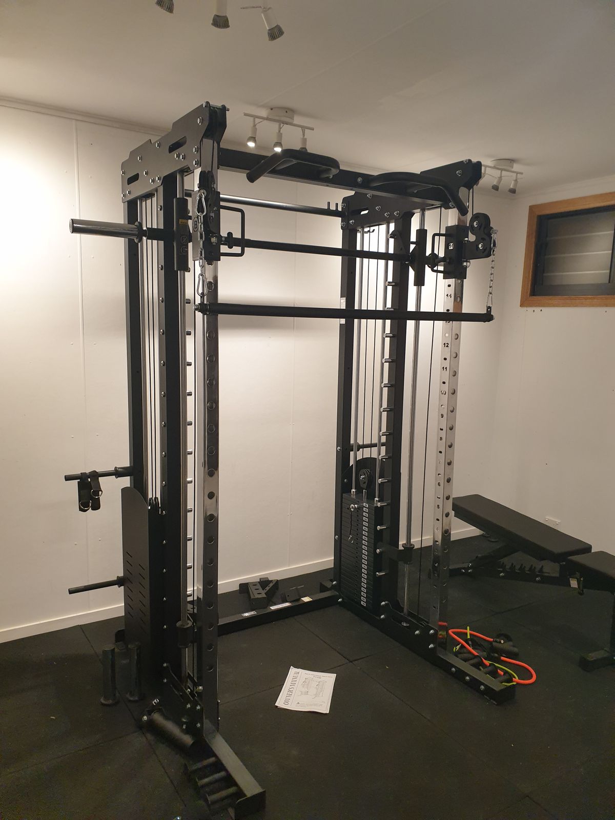 This multi-use machine features some of the most effective strength equipment, including a functional trainer, smith machine, power rack and multi-grip chin up bar. These pieces of equipment are excellent for performing a wide variety of upper and lower body exercises includes squats, deadlifts, bench press and pull ups. This means you can enjoy a well rounded workout, or train specific muscle groups as you please all with the one piece of equipment. Save on space but work up a sweat.
