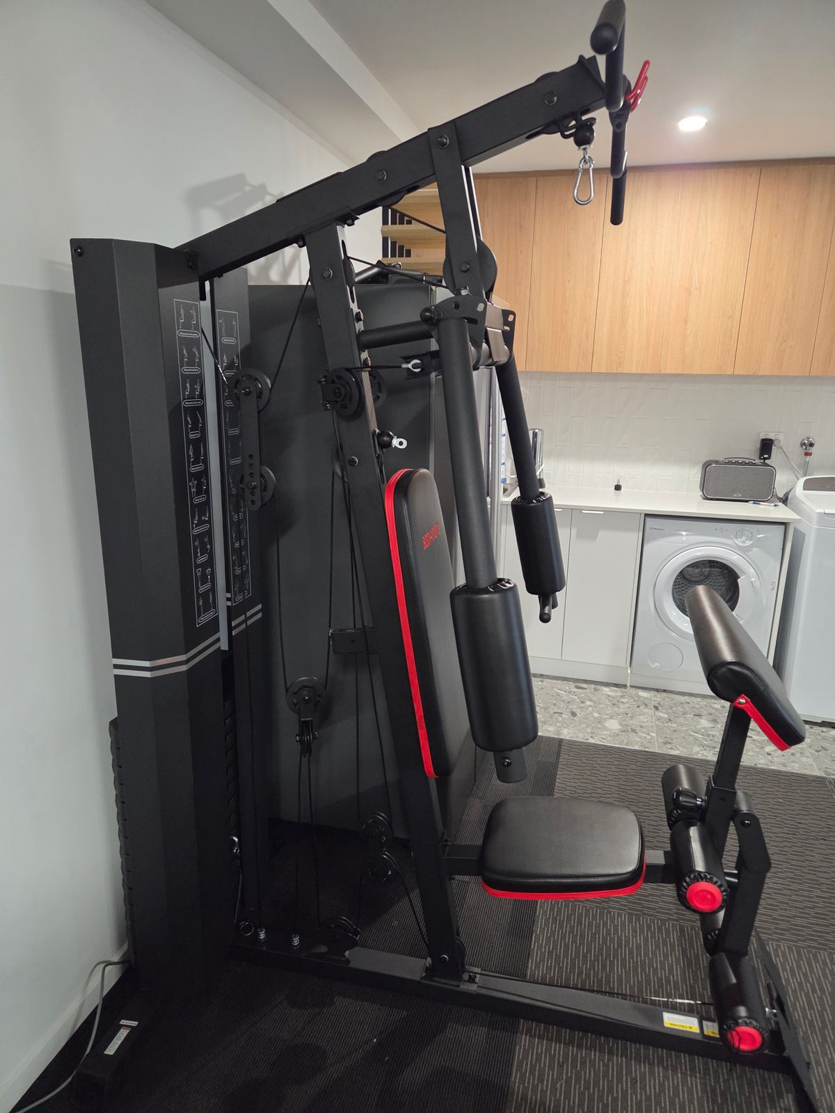 With the Home Gym you get form and function in the shape of 'oversized' padding and commercial gauge steel tubing wrapped in a jet black durable powder-coated finish. Considering the variety of exercises that can be performed using the Home Gym's stations, it has a considerably compact footprint making it ideal for smaller home gym spaces.