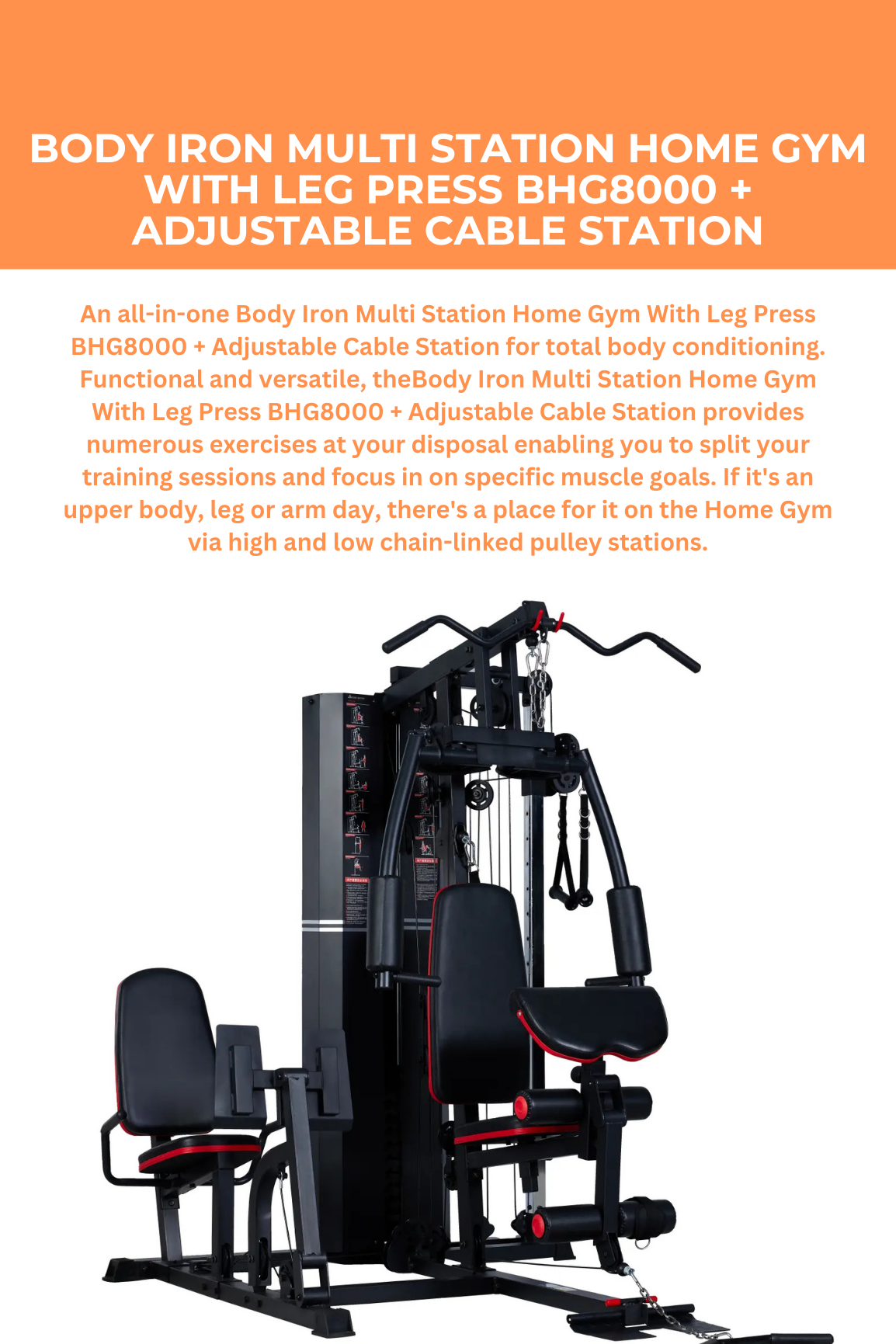 Body Iron Multi Station Home Gym With Leg Press BHG8000 + Adjustable Cable Station