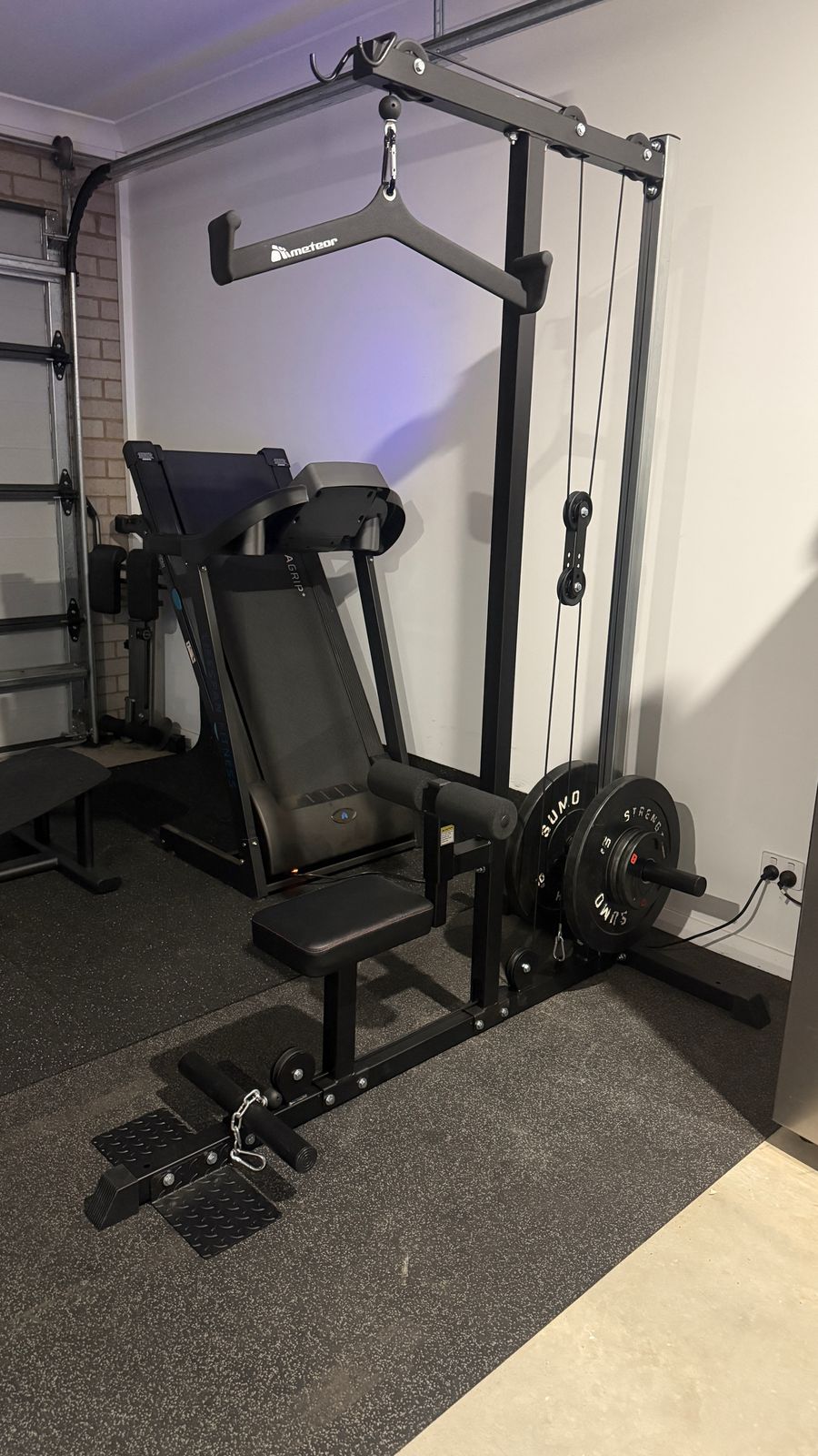 Featuring adjustable knee support, this lat pull down accommodates to all heights and limb lengths for a comfortable strength session, and you don't have to change the overheard cables when switching between the two exercises.