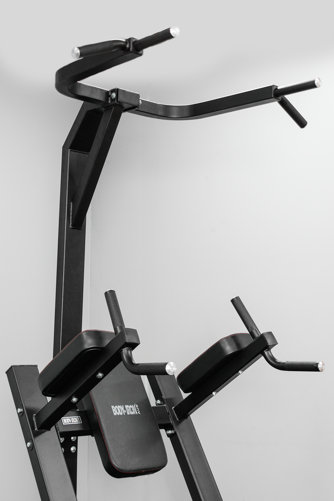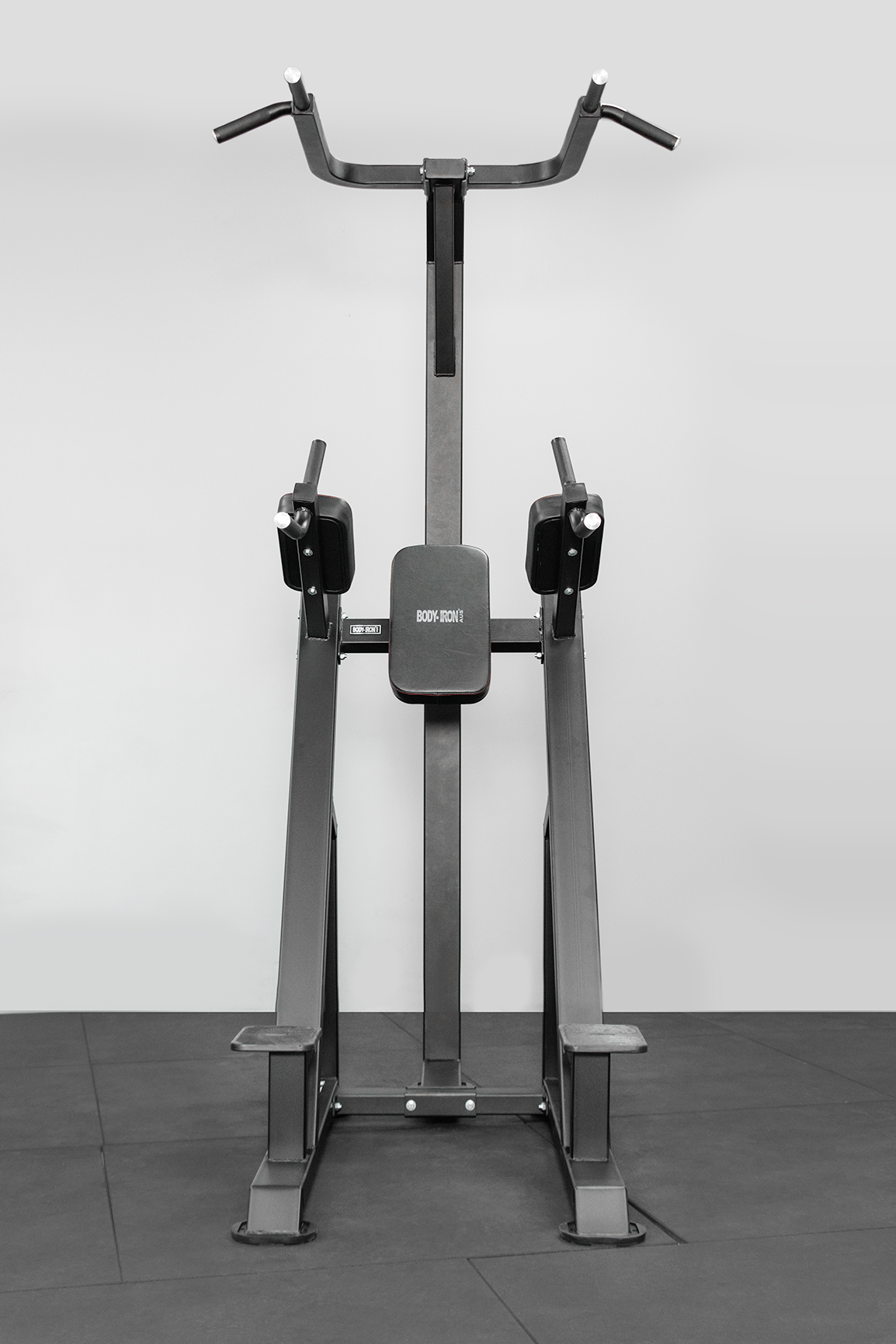 Body Iron Commercial VKR Power Tower challenges you to use your own body weight to sculpt your abs, chest, back and arms. Its unique design allows all exercises to be performed from the front. The wide base ensures stability and the coated, non-slip handles provide a comfortable grip. This Body Iron Commercial Power Tower is like having multiple workout stations in one!