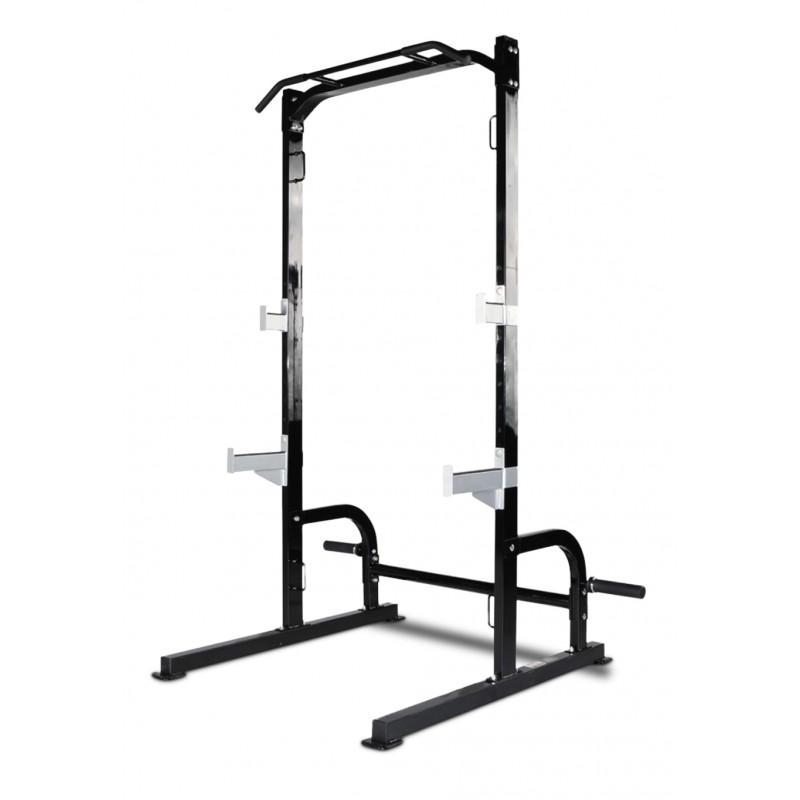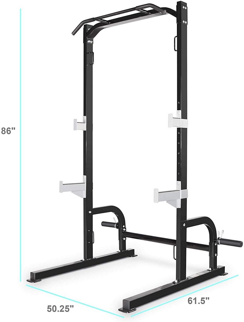 The Marcy SM-8117 Squat Rack is a versatile walk-in cage with adjustable safety and bar catches, perfect for home gym use.