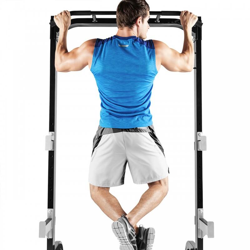 The Marcy Squat Rack features a multi-grip pull-up bar and accommodates a 6ft or 7ft Olympic bar, enabling you to strengthen your upper body from all angles. When paired with a bench (sold separately), the rack transforms into a complete station for all kinds of bench press variations, including flat, incline, and decline presses, as well as other compound exercises such as squats, overhead presses, and rows—making it a versatile addition to any home gym.