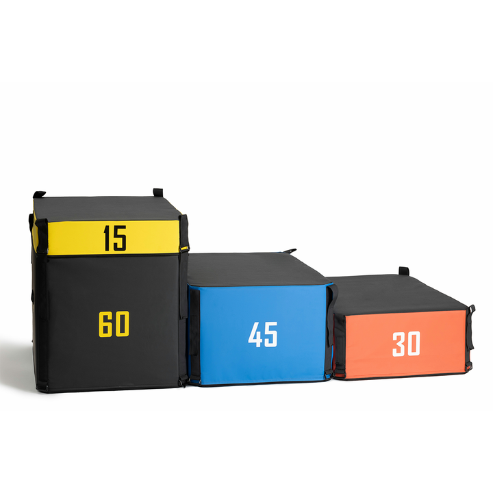 Each plyo box features Velcro straps and heavy-duty nylon locks on all four sides, allowing you to securely stack the boxes in a variety of height combinations. Whether you're performing box jumps, step-ups, or push-off drills, the wide base ensures a stable landing platform. The clearly printed height markings on both sides help you easily identify the size during workouts.