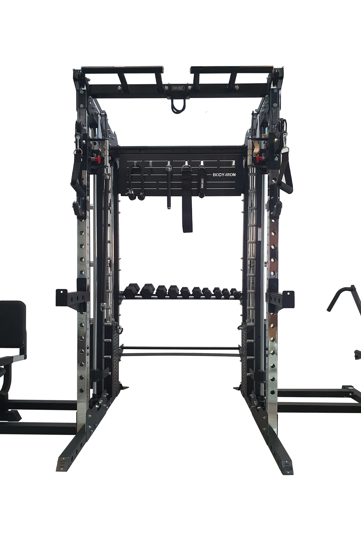 The Body Iron MFX360 Ultimate Trainer is an All-In-One Functional Trainer & Smith Machine that user the combine 220kg weight stack, MFX360 is a top of the Body X serious, series and guarantees to keep your workouts fresh and interesting for years to come! Suitable for home or commercial use, the MFX360 offers everything you need to achieve an intense, full body workout using a single piece of equipment.