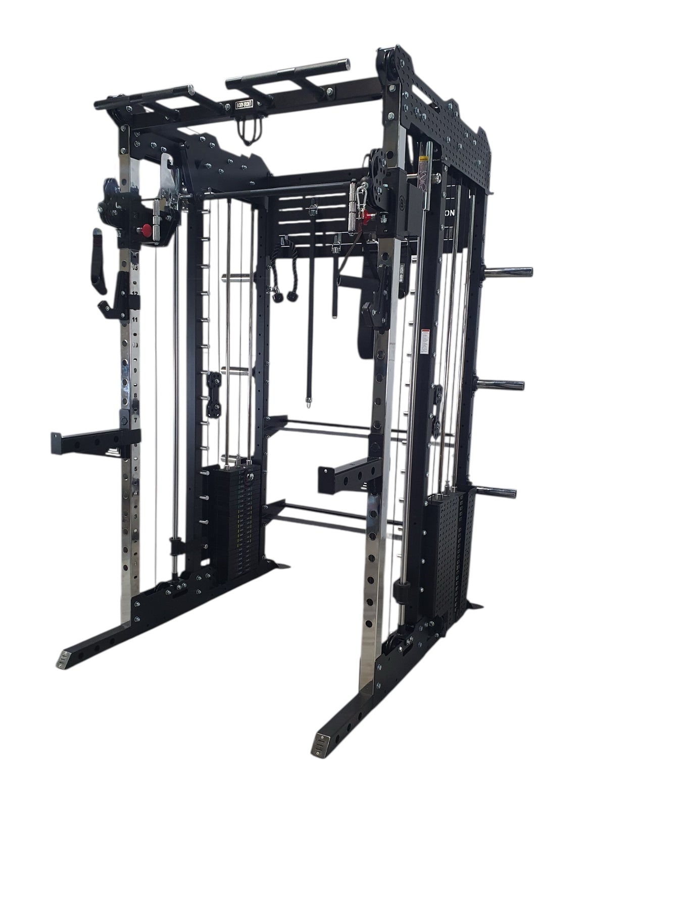• VERSATILITY: 3-in-1 machine that combines the three main functions of cable, smith and power rack.