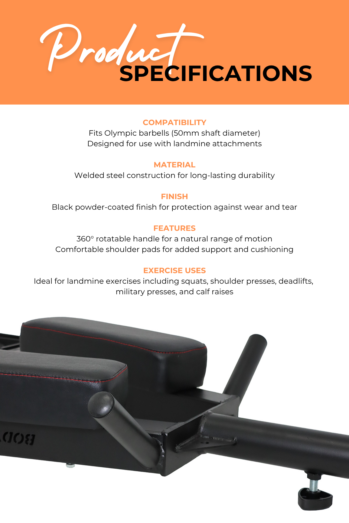Designed to slip over the end of an Olympic barbell, the Body Iron Shoulder Multi-Grip handle offers a way to engage in a much easier and more natural movement pattern for perform various landmine exercises, such as squat and shoulder press variations, deadlifts and military presses.