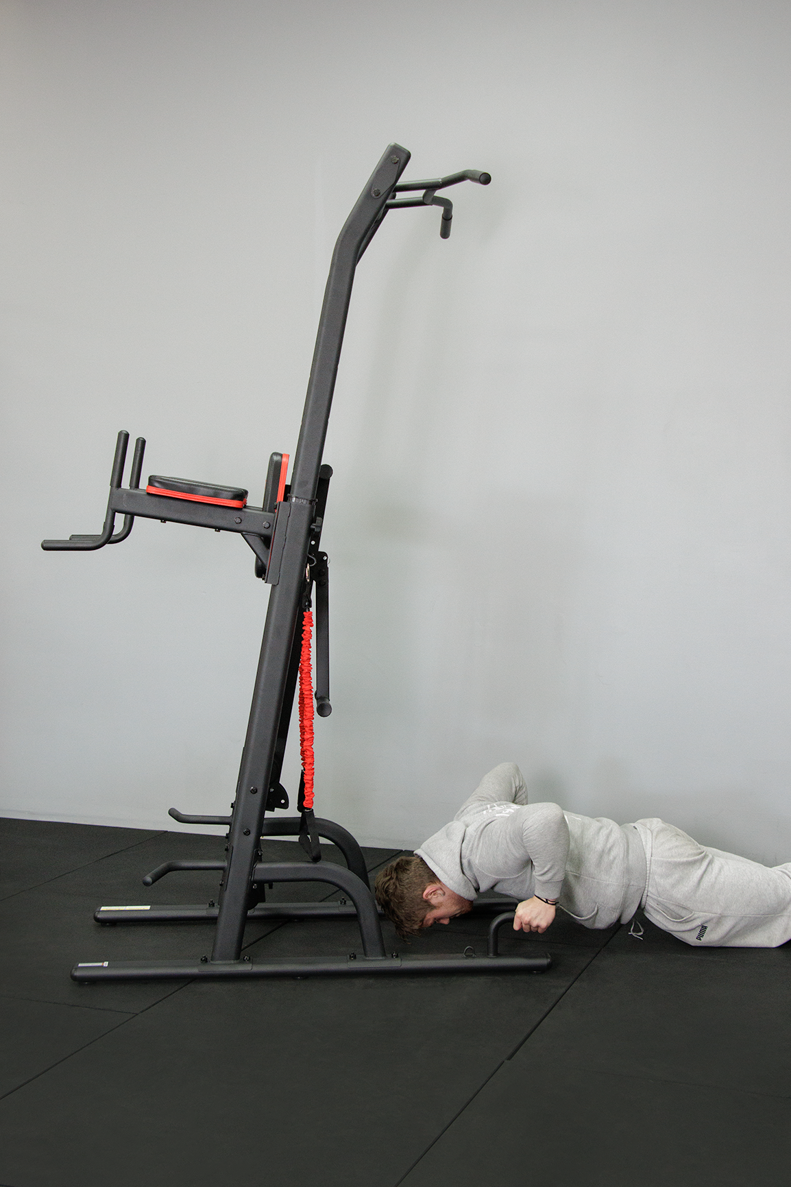 Constructed from reinforced powder-coated steel and designed with a wide base and rubber feet for maximum stability. The ergonomic grips and high-density foam padding keep you comfortable during intense sessions, while dual arched supports add extra security.