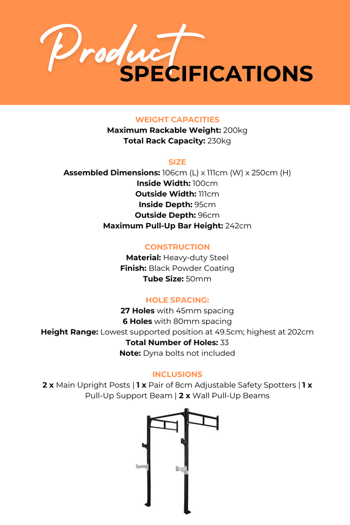 Please note: Dyna bolts are NOT included. You will also require a 7ft Olympic barbell to fit this rig.
