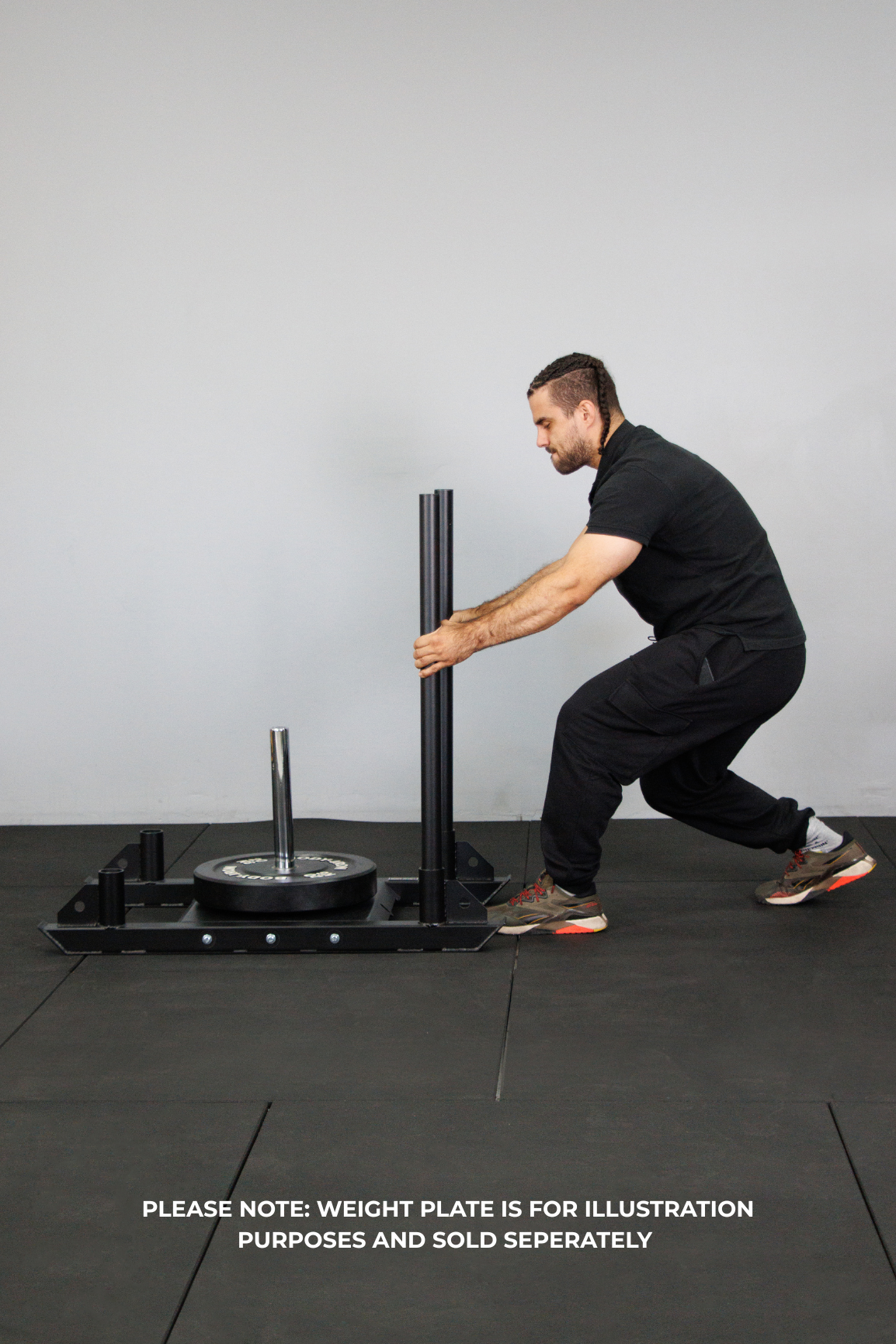 Used by professional athletes and high performance trainers. Push or pull the Prowler Sled with with included posts or add a harness to the carabiner position and drag the sled to create powerful legs.