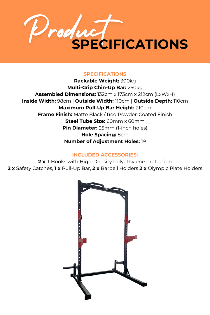 - STRONG CONSTRUCTION: Built with thick, 60mm X 60mm steel, The Half Rack can hold up to a massive 250kg of weight. It is also coated in a durable power coated paint which is highly resistant to wear and tear.