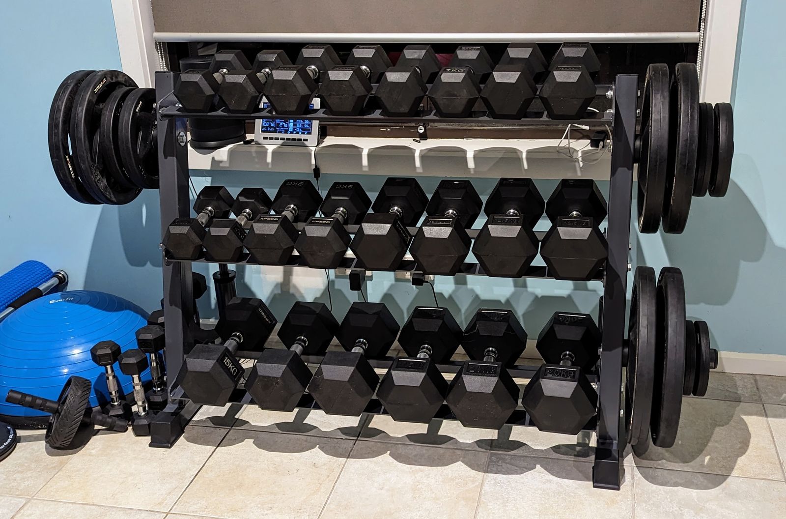 Featuring 3 layers of dumbbell storage trays that are located at a rational angle for easy taking and placing when in use. The rack also has 4x Plate holders that are compatible with Olympic Plates and Bumpers and 2x Barbell holders with nylon sleeves to ensure bar protection.