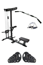 This Commercial Lat Pull Down / Low Row package will make setting up your gym an absolute breeze. Featuring the Body Iron Plate Loaded Lat Pull Down / Low Machine, a set of Olympic weight plates, and various cable attachments this gym package includes all the equipment necessary to focus on building upper body strength and size.