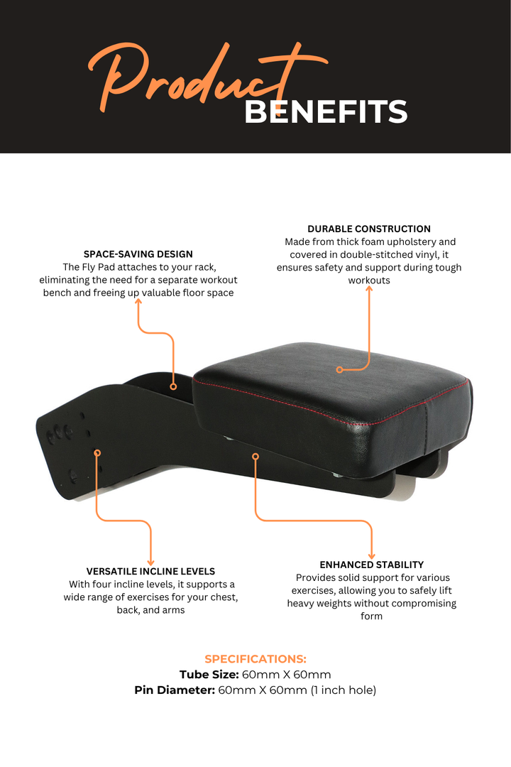 Offering 4 incline levels the fly pad can support your chest, back, or arms for a variety of exercises, including: