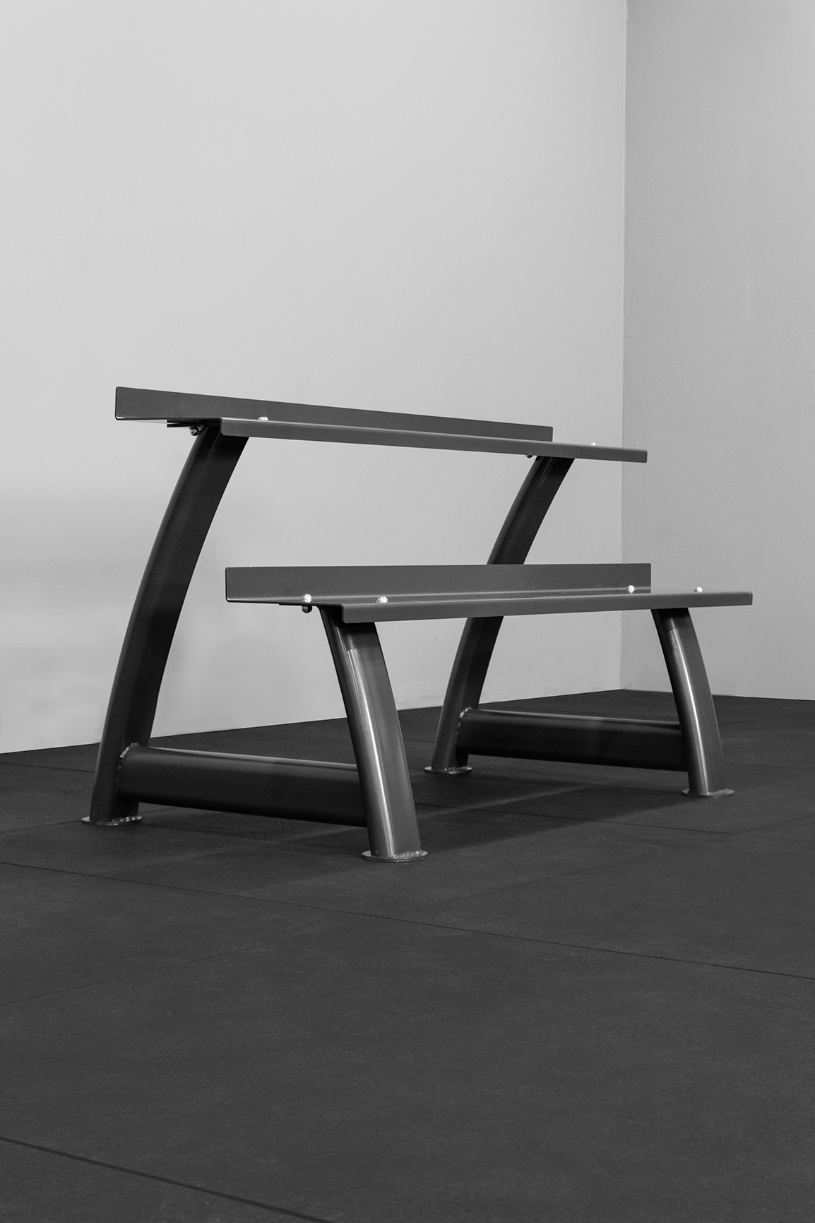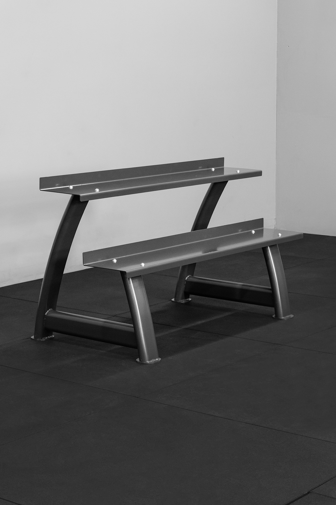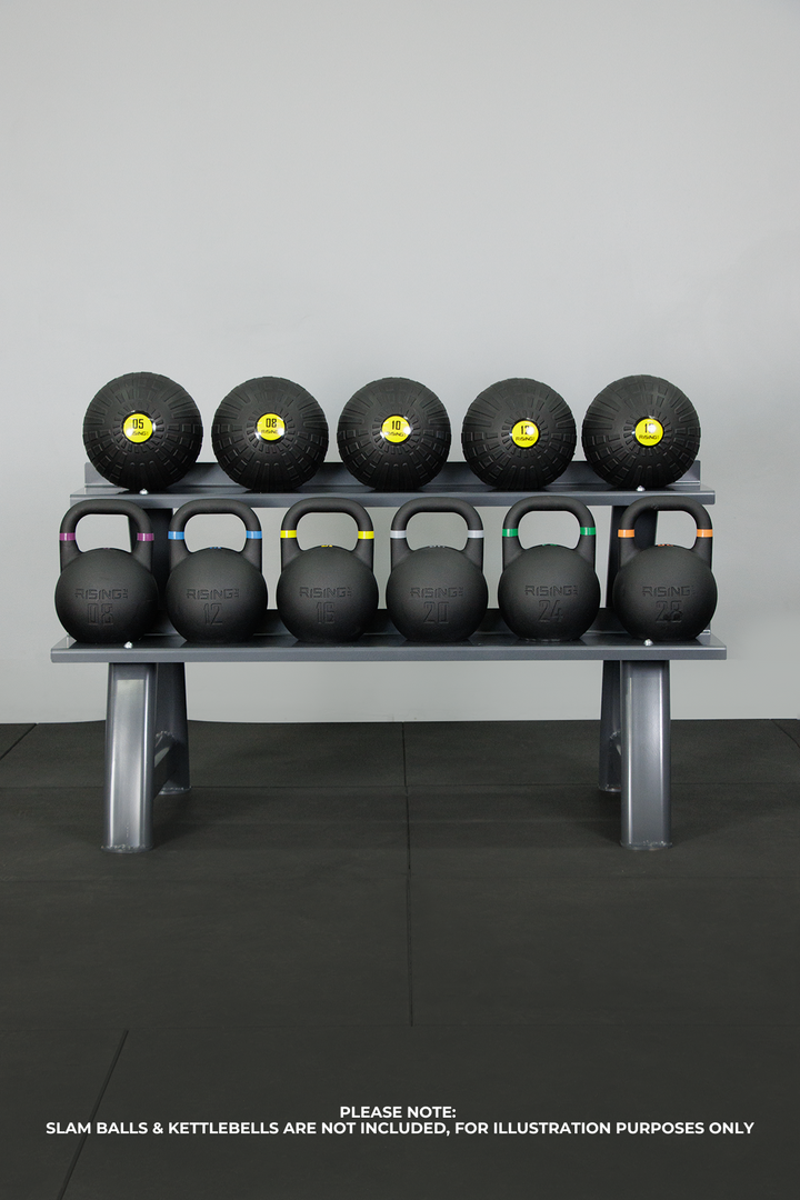 Featuring 2 layers of Kettlebell storage trays that are located at right height for easy taking and placing when in use.