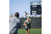 This reactive catch trainer helps athletes develop hand-eye coordination and athletic intelligence while engaging their brain and body to read and react. This will help them increase their performance, particularly in game day situations. It can be used for both pregame warmups as well as game-like scenarios either individually or with a team.